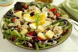 House-smoked salmon carpaccio with spring mix, cucumber, red onion, capers, and Italian dressing