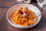 San Marzano tomato sauce & meatballs, topped with parmigiano