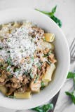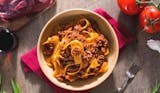 Bolognese, fresh mozzarella, béchamel, basil pesto