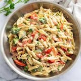 "Chicken Parm with basil pesto Includes your choice of side (see below)"