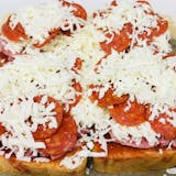 Ham, salami, pepperoni, mozzarella cheese with pizza sauce.