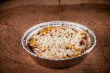 Cut in half. Choice of meat, rice, beans and salsa. Topped with savory sauce and cheese.