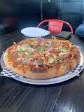 Pepperoni, linguica, ground beef, mushroom, jalapeno, garlic & olive oil, mozzarella.