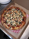 Pepperoni, mushroom, salami, bell peppers, onions, mild italian sausage, olives, marinara, mozzarella.