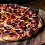 One topping pepperoni pizza. 12" Medium-size pizza. Feeds 1-2 People. All pizzas are made with Mongiello's thick, light, and crispy crust.