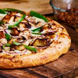 Our signature 18-month-old parmesan alfredo sauce, fresh mozzarella, fresh grilled chicken, mushrooms, onions and bell pepper.