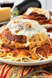 Chicken tender parmesan sandwiches with crispy chicken, marinara sauce, melted mozzarella loaded on hoagie bun.