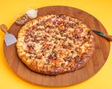 A sizzling, meaty masterpiece! Tomato sauce, extra cheese, pepperoni, beef, sausage, bacon