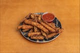 Zucchini sticks, dipped in an egg mixture with bread crumbs, parmesan cheese, baking powder & salt, fried until golden brown.