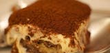 Layers of lady finger cookies soaked in espresso coffee with a mascarpone cream. Dusted with cocoa powder.