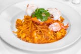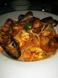 With Shrimp, Calamari, Scallops and Clams in a Spicy Tomato, Garlic Sauce.