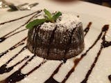 Chocolate layered cake alternating chocolate sponge and chocolate mousse. Covered in chocolate ganache.