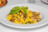 Wide flat egg noodles with wild mushrooms, prosciutto and white truffle oil.