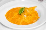 Home-style ravioli filled with ricotta and spinach in a light pink sauce.