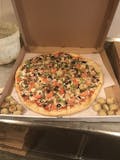 Pepperoni, sausage, meatball, olive, mushroom, onion, and green peppers. Always with diced tomatoes unless you request NO TOMATOES.