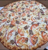 Garlic butter sauce, onion, gyro meat, tomato, feta cheese, and mozzarella cheese.