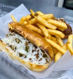 Philly with onions, green bell peppers, mushrooms & mozzarella cheese.