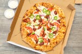 Topped with BBQ sauce, mozzarella, red onion & chicken meat.