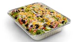 Penne Rigati, All-Natural Grilled Chicken, Smoked Bacon, Green Onions, Tomatoes, all tossed in our Creamy Garlic Sauce. Topped with Mozzarella Cheese, basil seasoning, and served with a regular cheezee garlic bread. Serves about 10.