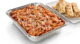 Penne Rigati and Italian Sausage tossed in our Homemade Red Tomato Sauce. Topped with Mozzarella Cheese, basil seasoning, and served with a regular cheezee garlic bread. Serves about 10.
