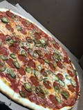 Our number one requested pie, this pie is topped with mozzarella cheese, pepperoni, jalapeño slices and fresh garlic.