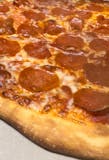 Thin crust pizza topped with delicious pizza sauce, mozzarella cheese and pepperoni.