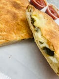 Hand crafted calzone filled with melted mozzarella cheese, ricotta cheese, parmesan cheese and our deliciously seasoned fresh spinach. Served with a side of our homemade marinara sauce.