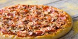 Pepperoni, sausage, ham, Canadian bacon, mushrooms, red onions, black olives, bell peppers and mozzarella cheese with our classic pizza sauce.