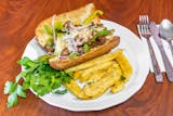 12" bread, Steak, green peppers, onions & provolone cheese.