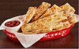 Our fresh pizza dough covered in butter, brown sugar, and cinnamon and topped with a dusting of mozzarella and powdered sugar.