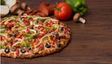 A traditional combination. Our legendary pepperoni, Italian sausage, mushrooms, black olives, bell peppers, onions, and diced tomatoes on our classic red sauce.