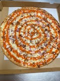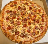 Pepperoni, bacon, Italian sausage, ham & mozzarella cheese, pizza sauce.