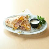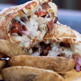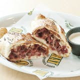Ground beef, sausage, pizza sauce, mozzarella cheese baked in our calzone shell.