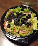 Pepperoni, ham, lettuce, tomatoes, bell peppers, cheese & olives.