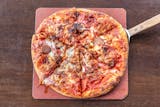 Authentic sauce, mozzarella, pepperoni, salami, bacon, canadian bacon, italian sausage, philly steak, smoked provolone.