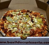 Parmesan, chicken, fresh basil, roasted red peppers, and artichoke hearts.