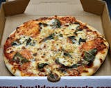 Mozzarella, gorgonzola, spinach, portobello mushrooms, sun-dried tomatoes.