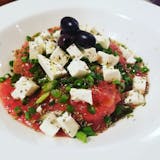 Tomato garlic marinade white beans, broccoli rabe, tzatziki, paprika oil.