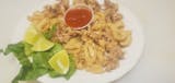 Fresh shrimps cooked in a white wine sauce with garlic butter lemon, red peppers & olive oil.