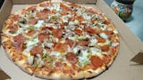 Bacon, pepperoni, sausage, onions, mushrooms & peppers.