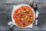 Sausage, bacon, onions, peppers, pepperoni, & mushrooms.