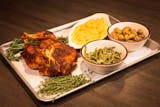1/2 Rotisserie Chicken served with Green Beans, Roasted Fingerling Potatoes, and Mac n' Cheese