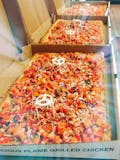 Chunks of grilled chicken covered in Cattleman’s BBQ sauce.
