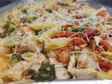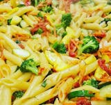 Penne with feta, fresh garden veggies, sun-dried tomato and our special dressing.
