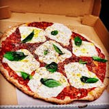 Hand-crushed tomatoes, fresh mozzarella cheese, basil, grated pecorino Romano cheese, oregano, and extra virgin olive oil.