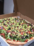 Traditional or thin whole wheat crust topped with romaine lettuce, grated cheese, grilled chicken and our tangy Caesar dressing.