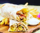 Gluten free. With grilled chicken, chicken kebab or lamb gyro meat.