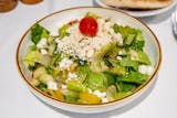 Gluten-free. Vegetarian. Romaine hearts, cucumber, tomato, pepperoncini, feta, olives, red onion, tzatziki & balsamic dressing.