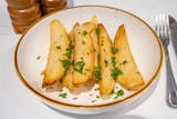 Marinated chicken tender and Idaho potatoes in fresh lemon-garlic sauce topped with fresh cilantro.