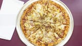 Pepperoni, hamburger, sausage, mushrooms, onions, peppers & anchovies.